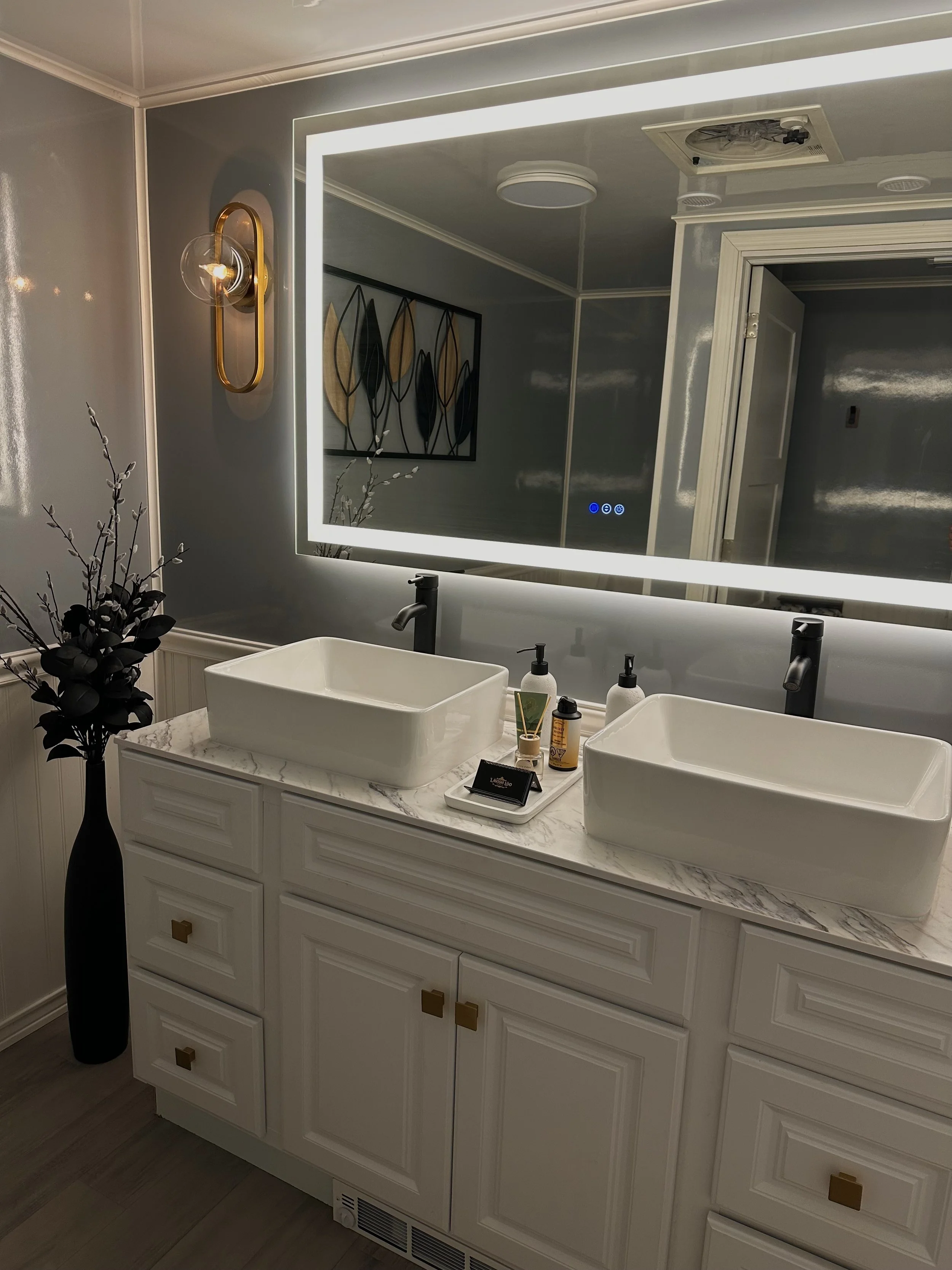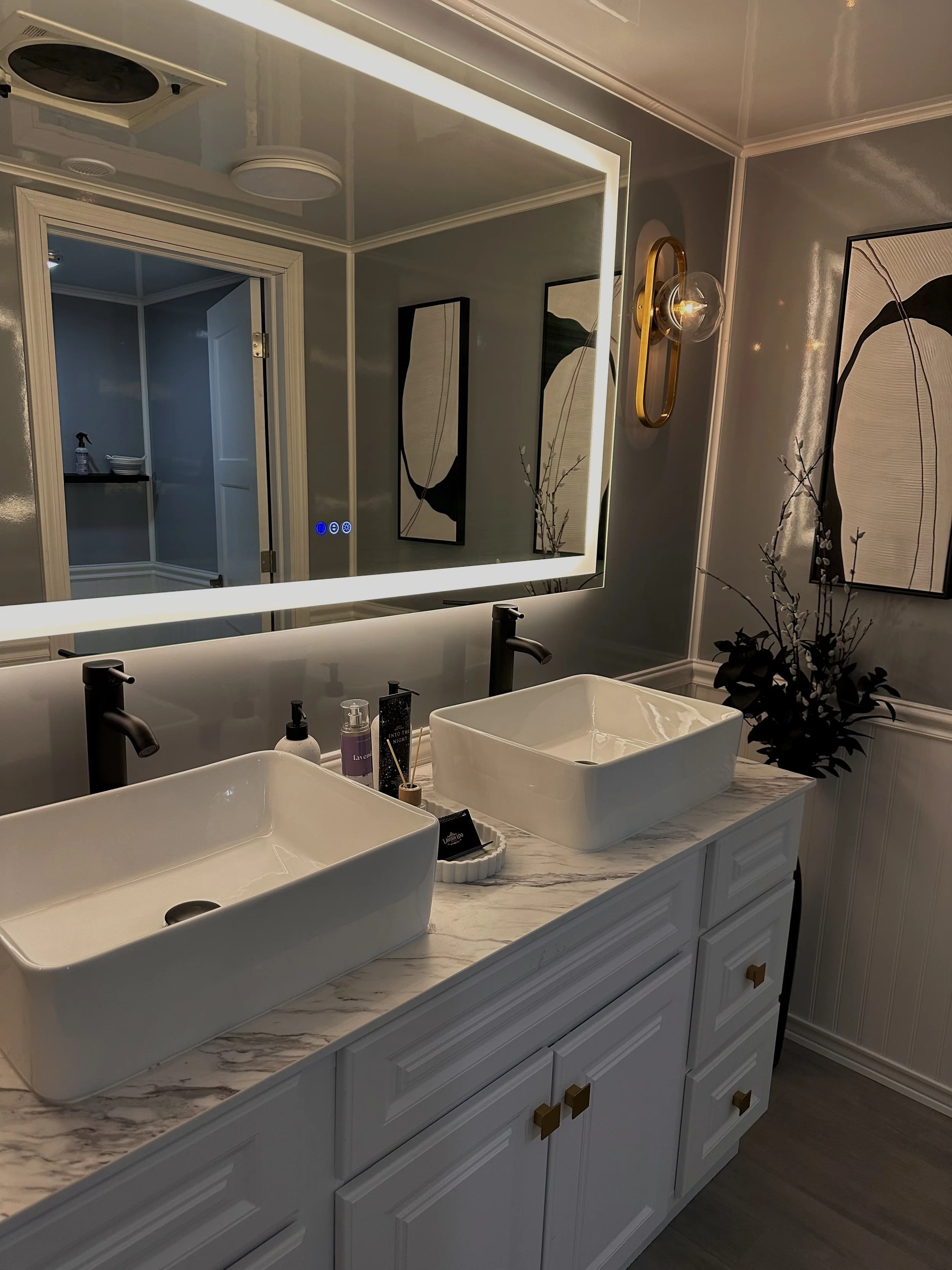 Highlights: Air conditioning, heating, running hot/cold water, 7 foot height clearance inside, full flushing toilets, LED mirrors/lighting & more